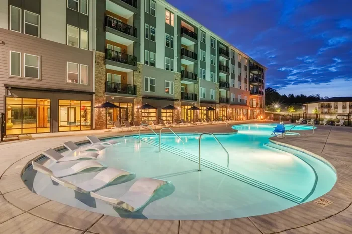 Community amenities include fitness center, luxurious pool with ample deck space, pet park, pet washing station, fitness center and yoga room, walking paths and trails, storage units, package locker system, bike rack station, on-site management, high-speed internet, on-site maintenance, clubhouse with kitchen, coworking space with conference room, EV charging station, rental garages and storage units.